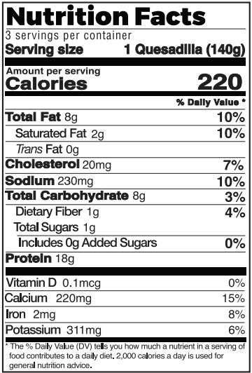 Experience the delicious and natural flavor of Kaiser Tandoori Quesadillas, which is crafted using a crispy, buttery flatbread. Each Tandoori Quesadilla is generously stuffed with all-natural and minimally processed Halal Chicken, Monterey Jack Cheese, mozzarella, onion, corn, and peppers. A hearty mix of veggies, meat, and cheese that makes a perfect lunch or dinner.